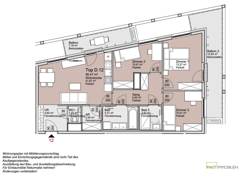 Details Wohnung Bauteil D Top 12: