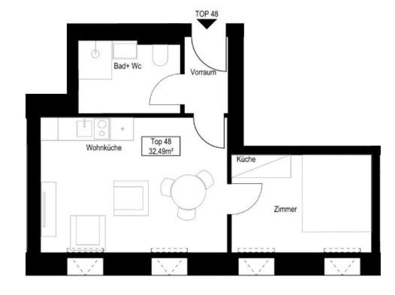 Dieses kleine Raumwunder überzeugt durch seine clevere Aufteilung und bietet auf wenigen Quadratmetern modernen Wohnkomfort.