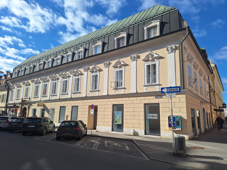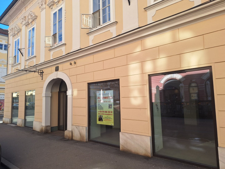 - Dieses ca. 240,35m² - (ca. 214,80m² Geschäftsfläche, ca. 25,55m² klimatisiertes Lager im Keller, ev. teilbar) - große Geschäftslokal befindet sich im Erdgeschoss eines besonders attraktiven, historischen Barockgebäudes inmitten der Altstadt von Klagenfurt und ist in Richtung Domgasse sowie Burggasse hin ausgerichtet.