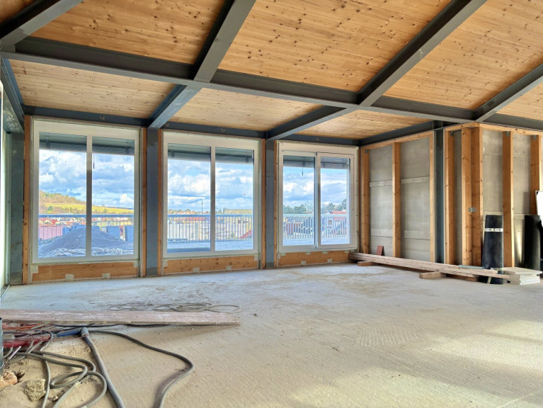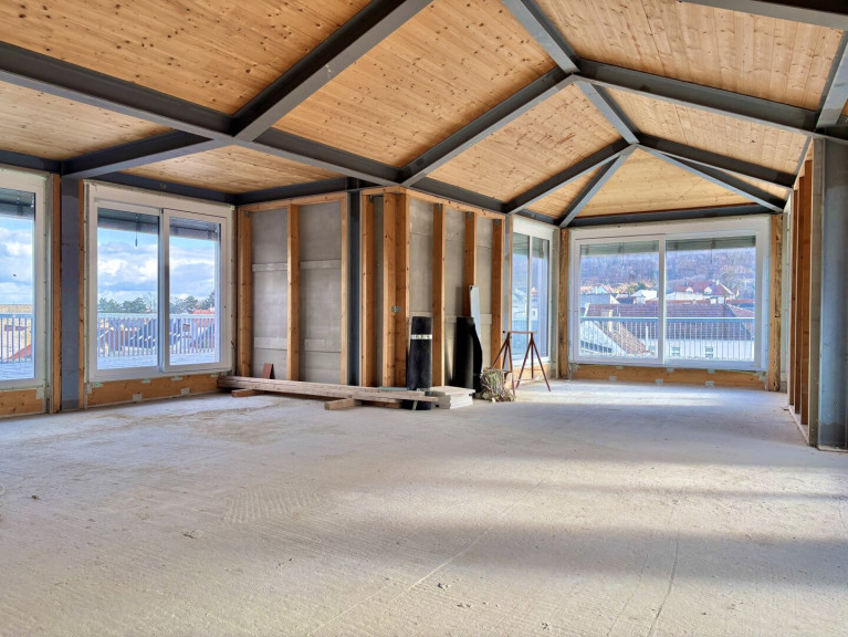 Die Fläche befindet sich im obersten Dachgeschoss und eröffnet einen herrlichen Blick über Hainburg sowie einen direkten Ausblick auf den Schlossberg.