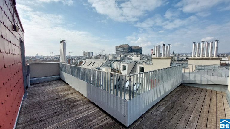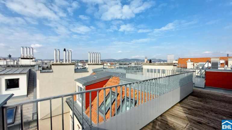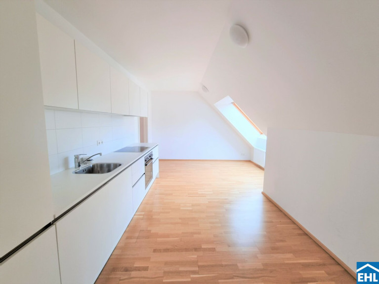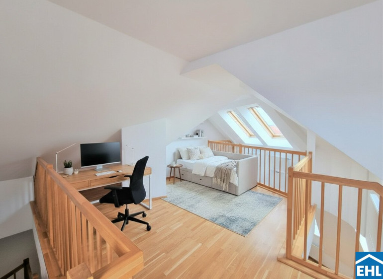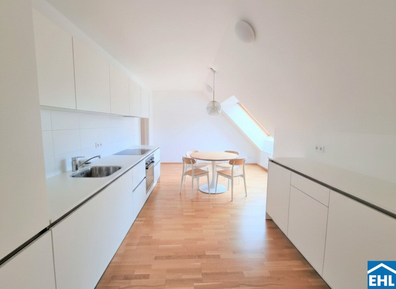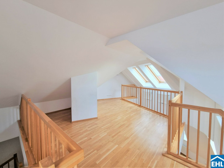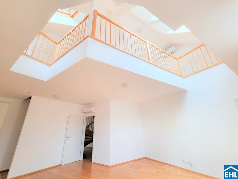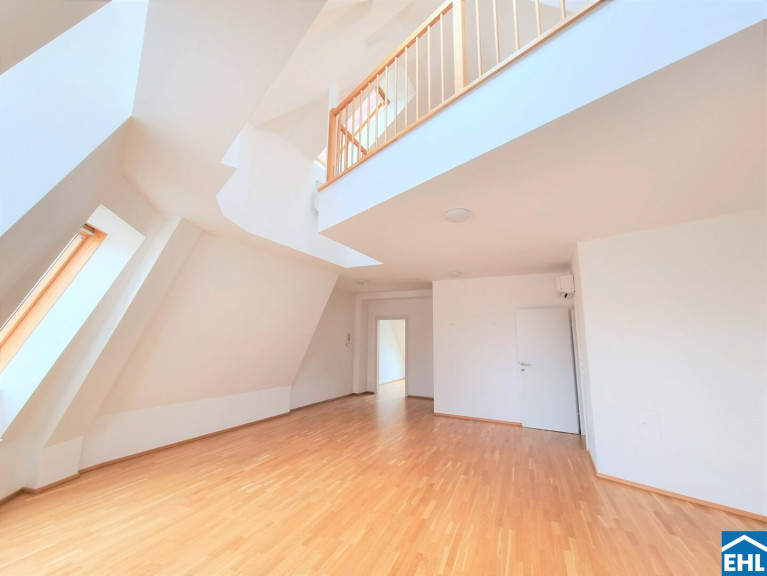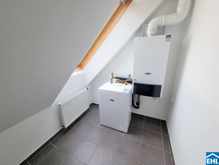 Die Wohnung selbst erstreckt sich über das 1. und 2. Dachgeschoß und verfügt über einen großzügigen Wohnraum, eine separate Küche, ein Schlafzimmer, eine Galerie, ein Badezimmer mit Badewanne, ein separates WC und zwei Abstellräume, einer davon mit Waschmaschinenanschluss. Eine große Terrasse lädt zum gemütlichen Beisammensein ein.