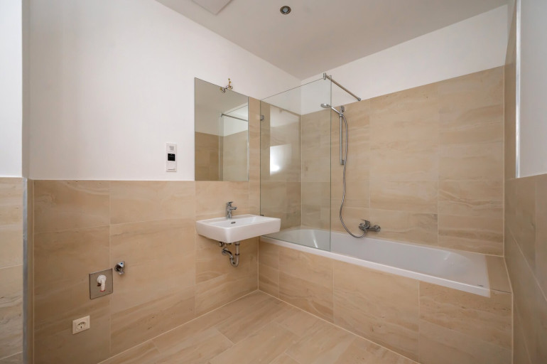 Estrichboden, Fliesen, Parkett, Fußbodenheizung, Personenaufzug, Ostbalkon, Badewanne