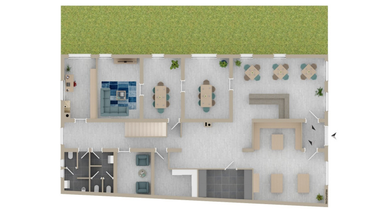 EG : Gewerbefläche von ca. 150m² - WC-Anlagen für Damen und Herren jeweils ca. 7m² - eine Freifläche (Gastgarten)