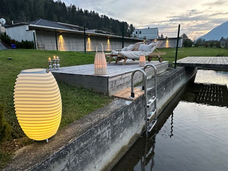 Ob Sie auf Ihrer Sonnenliege ein Buch lesen, oder sich in Ihrem Whirlpool entspannen, Sie haben den breiten See im Blick!