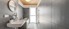 Die formschöne Architektur der mit vorvergrauten Lärchenholzfassaden veredelten Stadtvillen passt sich dank großzügiger Freiräume harmonisch an die natürliche Umgebung an. In Summe bieten die vier getrennten Häuser – zwei davon verfügen über eine direkte Garagenanbindung – auf jeweils drei Ebenen ausreichend Platz für insgesamt 36 barrierefreie Zwei- bis Vier-Zimmerwohnungen.