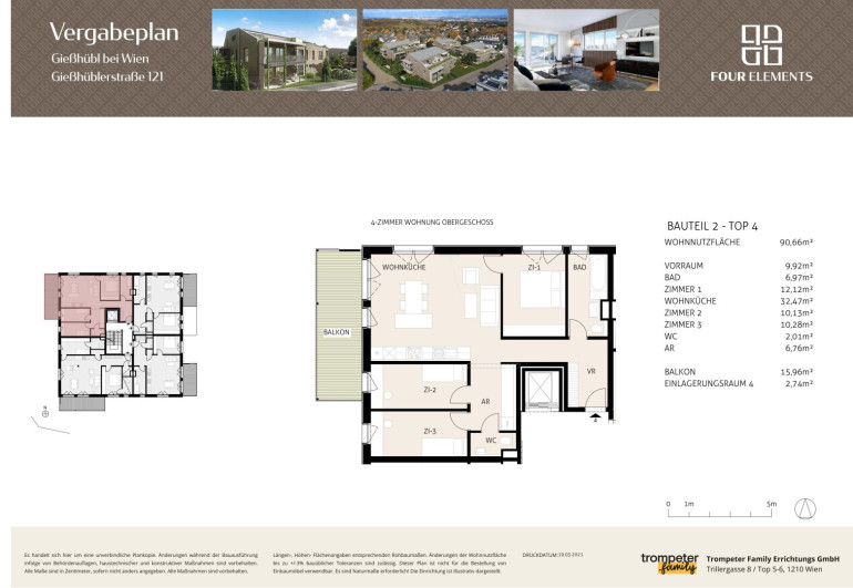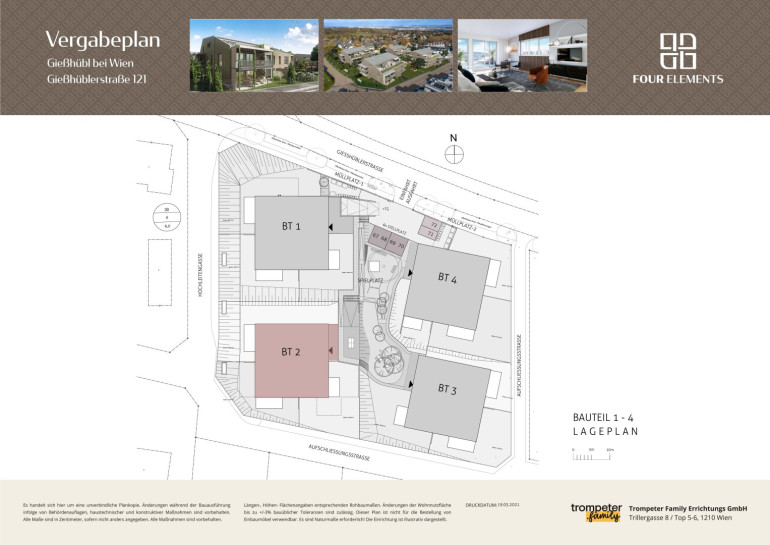 Unter dem Namen „FOUR ELEMENTS“ wurde in der Gießhüblerstraße 121 / Ecke Hochleitengasse von der Trompeter Family Errichtungs GmbH ein besonders exklusives und ökologisch nachhaltiges Wohnhausprojekt in energieeffizienter Holzbauweise realisiert. Als kompetenter Partner, der mit über 90 Jahren Erfahrung im Holzbau und über 2.000 umgesetzten Einfamilienhäusern als Passivhauspionier der ersten Stunde gilt, ist die innovative Kärntner Firma Weissenseer mit an Bord.