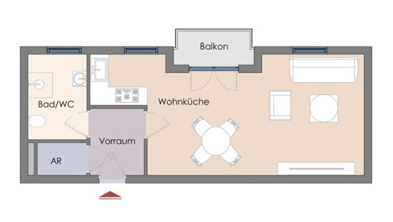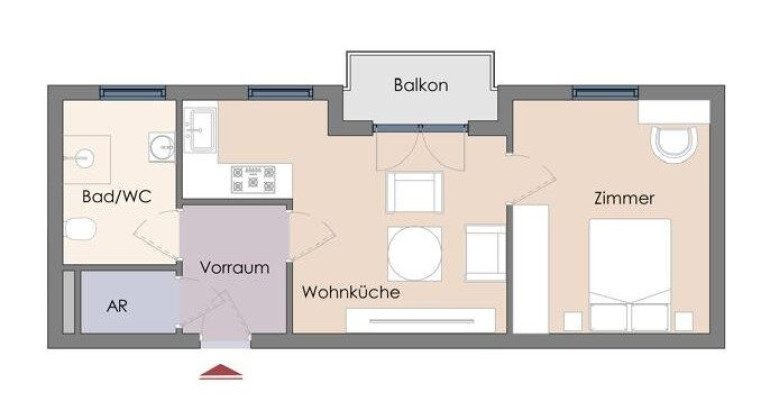 Auf einer Wohnfläche von ca. 38,60m² erwartet Sie folgende Raumaufteilung:
