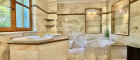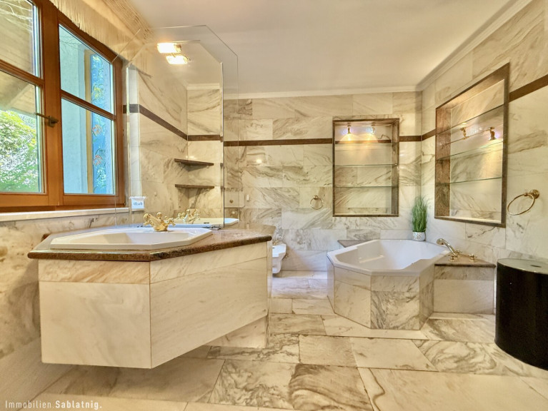 - Luxuriöses Badezimmer (Dusche, Badewanne, Doppelwaschtisch, WC und Bidet)
