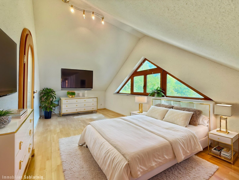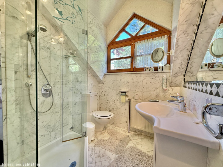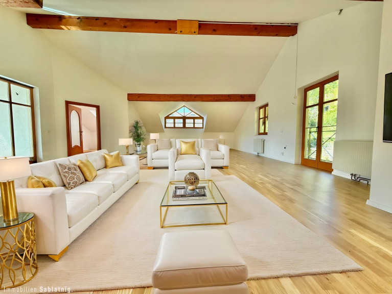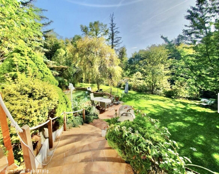 Diese exklusive Villa befindet sich in einer absolut ruhigen Lage direkt am Waldrand. Der großzügige Garten in Südlage bietet eine traumhafte Aussicht auf den Jochgrabenberg. Hier vereinen sich naturnahes Wohnen und beste Infrastruktur: Nahversorger, Schulen und Freizeitangebote finden Sie im nahegelegenen Pressbaum, während die ausgezeichnete Verkehrsanbindung – der Bahnhof Rekawickl ist nur etwa 2 km entfernt – schnelle Erreichbarkeit der Umgebung gewährleistet.