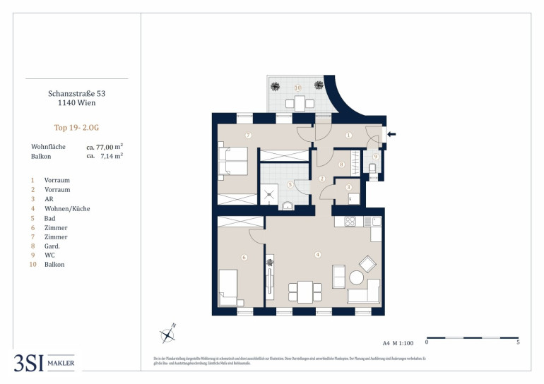 Der guten Ordnung halber halten wir fest, dass, sofern im Angebot nicht anders vermerkt, bei erfolgreichem Abschlussfall eine Provision anfällt, die den in der Immobilienmaklerverordnung BGBI. 262 und 297/1996 festgelegten Sätzen entspricht – das sind 3 % des Kaufpreises zzgl. 20 % USt. Diese Provisionspflicht besteht auch dann, wenn Sie die Ihnen überlassenen Informationen an Dritte weitergeben. Letztlich weisen wir darauf hin, dass wir als Doppelmakler tätig sind und ein familiäres/wirtschaftliches Naheverhältnis zwischen der 3SI Makler GmbH und der Verkäuferin besteht.