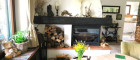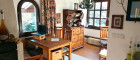 - Wohnraum mit abgeteilter Essecke, Kaminofen und Zugang zu Balkon, überdachter Terrasse und Garten