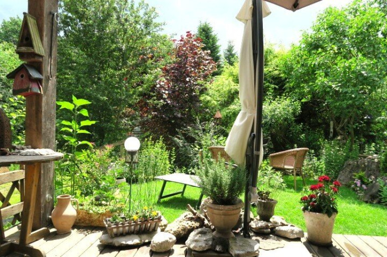 Dieser charmante Traum einer Gartenwohnung besticht durch eine absolut großzügige Raumgestaltung, ideal für Singles und/oder Paare mit der Sehnsucht nach Platz, ohne auf die Annehmlichkeiten einer verwalteten und betreuten Wohnung zu verzichten. Als absolutes Highlight ist der traumhafte Garten samt Überblicksbalkon und überdachter Terrasse zu bezeichnen. Uneinsichtig ausgerichtet, umgeben von Sträuchern und Büschen und trotzdem so sonnig lädt der Garten zum Verweilen, Relaxen, Garteln oder zum Gestalten ein. Erholung in den eigenen vier Wänden! Durch die Pergola vor Wind und Wetter geschützt kann von der Terrasse aus die Tier- und Pflanzenwelt eines angrenzenden kleinen Weihers und des eigenen Gartens beobachtet werden