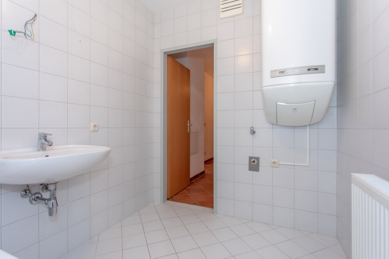 Die Wohnung bietet Ihnen viel Platz zum Wohnen und Wohlfühlen: Im ersten Stock finden Sie ein großzügiges Wohnzimmer, einen abgetrennten Küchenbereich, ein gemütliches Schlafzimmer sowie einen praktischen Abstellraum. Das moderne Badezimmer ist mit einer Badewanne, einem Handwaschbecken und einem Waschmaschinenanschluss ausgestattet. Das separate WC ist direkt neben dem Bad angeordnet.
