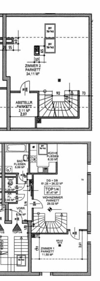 Über eine wunderschöne Holztreppe gelangen Sie ins Obergeschoss, wo ein weiteres Zimmer und ein Abstellraum, der auch als Schrankraum genutzt werden kann, auf Sie warten. Die Wohnung ist außerdem mit hochwertigen Parkettböden versehen, die für ein stilvolles Wohngefühl sorgen. Ein Kellerabteil rundet das Angebot ab, und auch für Ihren PKW ist mit einem Abstellplatz gesorgt (Kaufpreis: € 10.000,--).