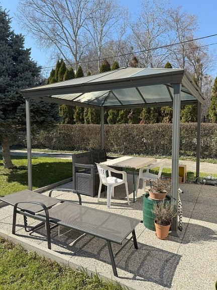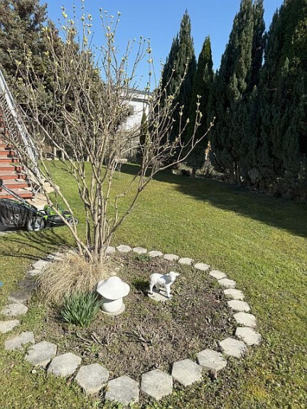 Im unteren Bereich befindet sich ein Raum mit einer Toilette und ein Wachmaschinenanschluss und ein Warmwasserspeicher. Der Garten bietet viel Platz und durch das herrliche Grün ein wahrer Energiespender.
