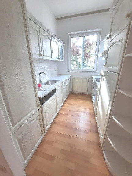 Die kleinere, ca. 47 m² große Wohneinheit besteht aus Vorraum, Wohnküche, Zimmer, Bad mit Dusche. Sie wurde 2012 komplett renoviert und ist möbliert. Die hochwertige Küche ist mit Miele E-Geräten ausgestattet. Diese Wohneinheit eignet sich hervorragend für berufliche Zwecke (Ordination, Büro), Familien mit Teenies oder auch zur Vermietung.