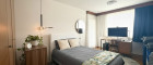 Das modern verflieste Badezimmer ist mit Doppelwaschbecken, Badewanne und einem weiteren WC ausgestattet. Ein separates WC mit Handwaschbecken ergänzt das Raumangebot.