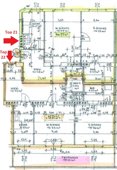 Die Nachbarwohnung Top 22 mit einer Fläche von 62,74 m² kann ebenfalls gekauft werden.