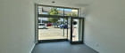Es teilt sich in einen Hauptgeschäftsraum mit großer Glasfront und einem hinteren Bereich.