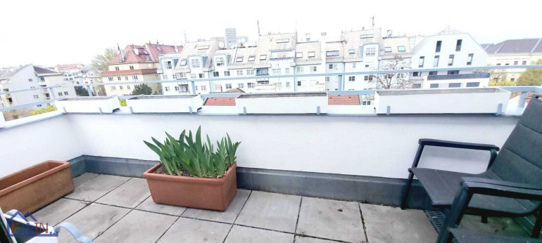 Genießen Sie entspannte Stunden auf der eigenen Terrasse mit herrlichem Stadtblick – der perfekte Ort, um den Tag mit einem Frühstück in der Sonne zu beginnen oder den Abend mit einem Glas Wein ausklingen zu lassen. Die große Fensterfront sorgt für viel Tageslicht und eine gemütliche Atmosphäre.