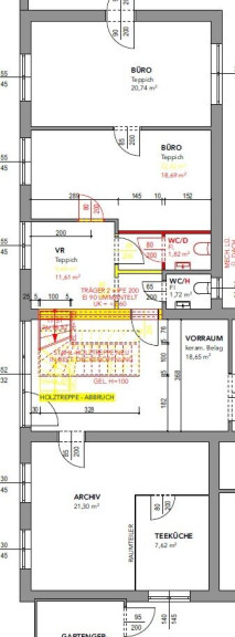 RÄUMLICHKEITEN: großer Eingangsbereich mit schönem Empfang, 3 Büroräume, Teeküche, WC;