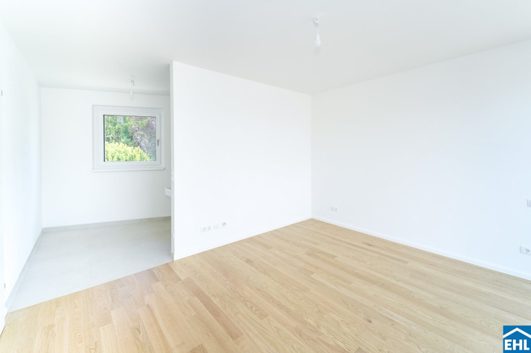 Die Liegenschaft vereint nicht nur architektonische Eleganz, sondern setzt auch in puncto Ausstattung auf höchste Standards. Große Fenster mit Dreifachverglasung lassen viel Licht in die Wohnungen und sorgen für eine angenehme Wohnatmosphäre. Raffstores bieten flexiblen Sonnenschutz und Privatsphäre. In den Wohnräumen sorgen edle Parkettböden für eine warme, wohnliche Atmosphäre, während die Bäder mit großformatigen Feinsteinzeugfliesen modern und stilvoll gestaltet sind.