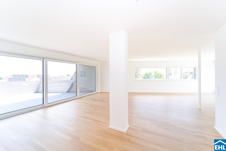 Im ersten Bauteil finden sich 9 hochwertige Wohnungen, die durch ihre durchdachte Raumaufteilung und großzügigen Außenflächen bestechen. Besonders die oberen Etagen bieten einen atemberaubenden Blick über die Dächer von Brunn bis hin zur Skyline der nahen Stadt Wien. Die Wohnflächen variieren zwischen 85m² und 188m², sodass Sie hier mit Sicherheit die ideale Größe für Ihre individuellen Wohnbedürfnisse finden.