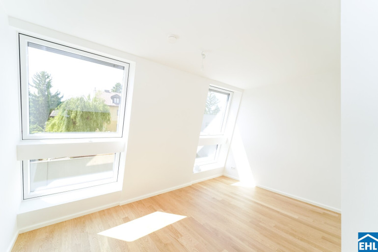 Die Liegenschaft vereint nicht nur architektonische Eleganz, sondern setzt auch in puncto Ausstattung auf höchste Standards. Große Fenster mit Dreifachverglasung lassen viel Licht in die Wohnungen und sorgen für eine angenehme Wohnatmosphäre. Raffstores bieten flexiblen Sonnenschutz und Privatsphäre. In den Wohnräumen sorgen edle Parkettböden für eine warme, wohnliche Atmosphäre, während die Bäder mit großformatigen Feinsteinzeugfliesen modern und stilvoll gestaltet sind.
