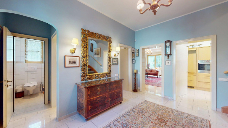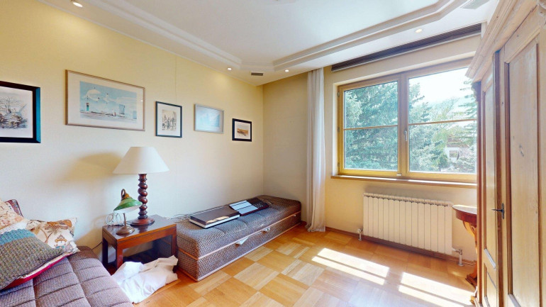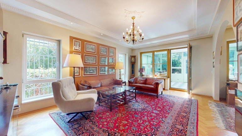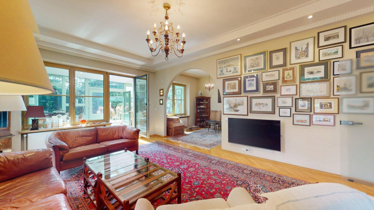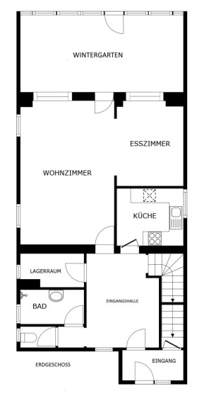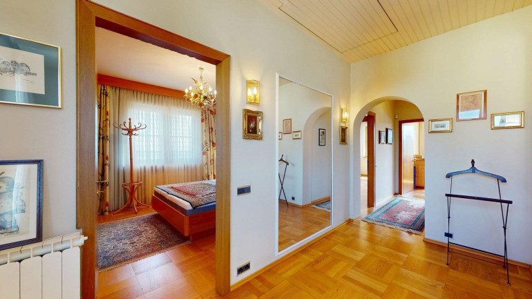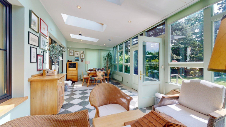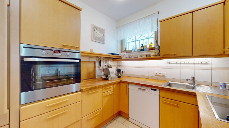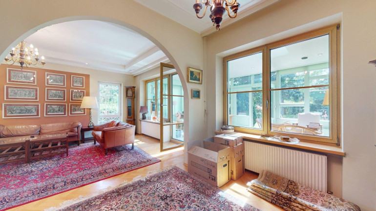 - Erdgeschoss (ca. 87m²): Eingangsbereich und Toilette, Gästebadezimmer und Abstellraum. Anschließend ein großzügiges Wohnzimmer mit angrenzendem Essbereich und getrennter Küche (mit Durchreiche), anschließend ein großer (23,31m²) großer Wintergarten, mit Ausgang in den gepflegten Garten. Vor allem aber zeichnet sich die Erdgeschoßebene durch viel Glas und damit angenehm helles Wohnambiente aus.