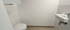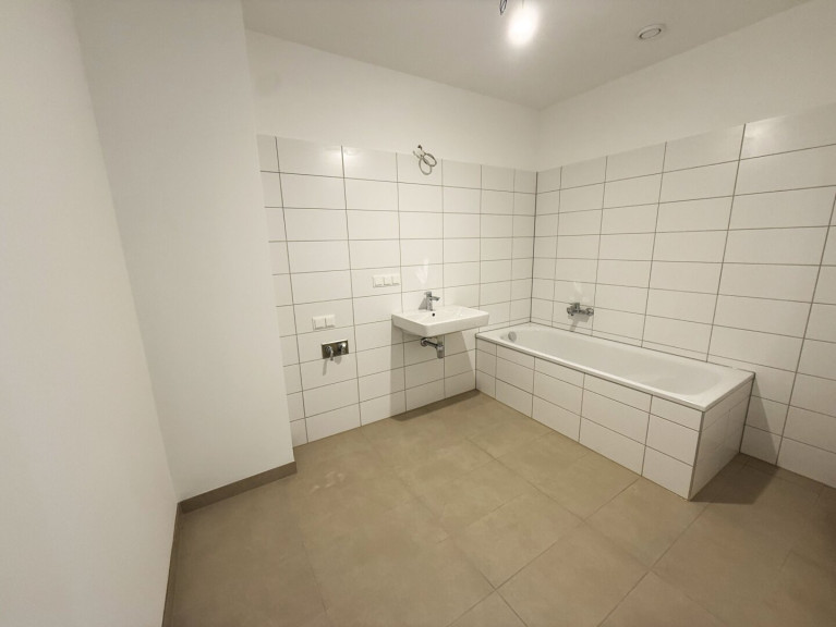 Das Badezimmer ist modern verfliest und mit einer Badewanne ausgestattet. Des Weiteren befinden sich ein Handwaschbecken und ein Waschmaschinenanschluss im Badezimmer. Das WC ist ebenfalls modern verfliest und separat, neben dem Badezimmer vorzufinden.