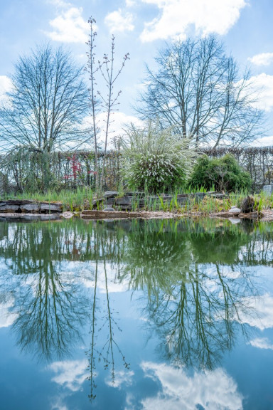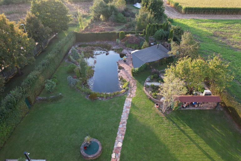 Der weitläufige Garten mit Grill, Schwimmteich, Wasserfällen, kleinen Sitzbereichen und wunderschönen Pflanzen ladet Sie zum Verweilen und Entspannen ein.