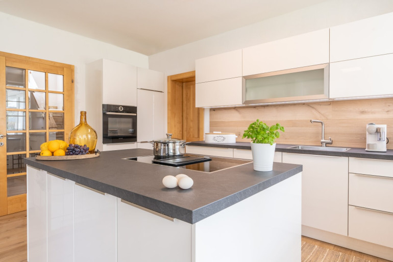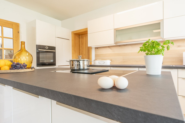 Geheizt wird optional mit einer Luftwärmepumpe, Öl oder dem wunderschönen Kachelofen (mit Tischherd und offener Feuerstelle).