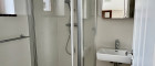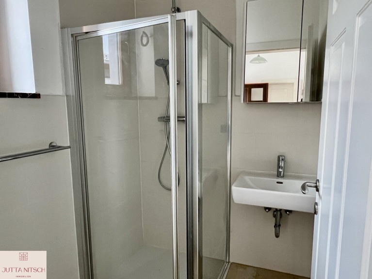 - Badezimmer mit Waschtisch und Dusche