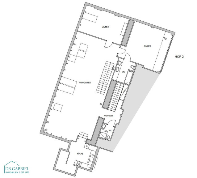 Die Wohnung befindet sich in einem Alt-Wiener Haus aus dem 18. Jahrhundert. Der original Dachstuhl ist in die Architektur eingebunden.
