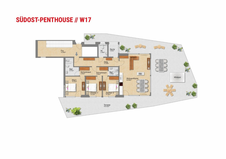 - 152,02 m² Südost-Panoramaterrasse, großzügig überdacht