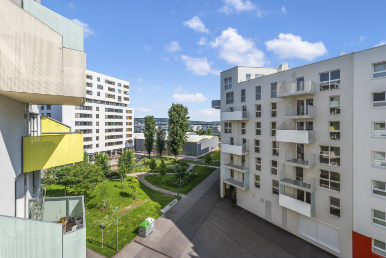 -) hervorragende Anbindung an das öffentliche Verkehrsnetz (S-Bahn-Station Jedlersdorf, Bus 30A,