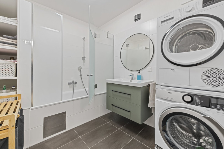 - Badezimmer mit Badewanne, Waschbecken, Waschmaschine und Trockner (ca. 6,00m²)