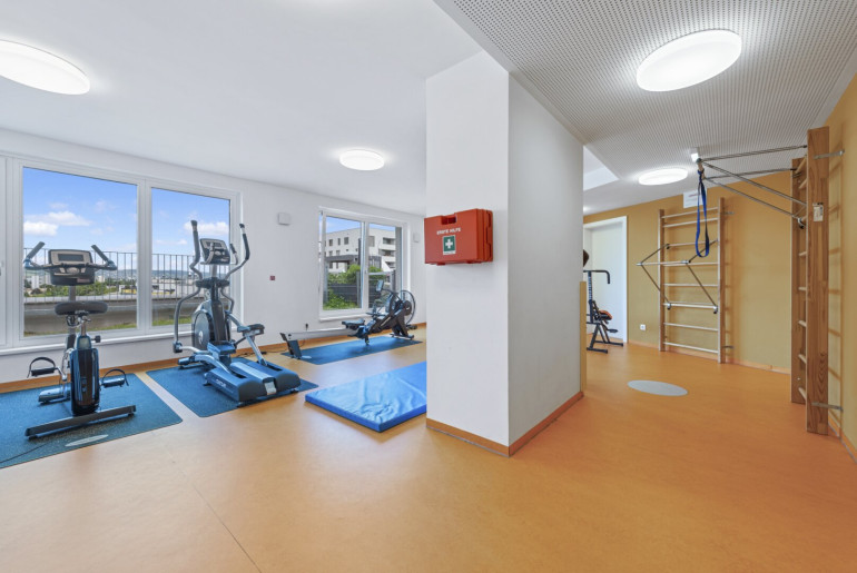 Fitnessraum, Gemeinschaftsraum, Urban Gardening, Kinderspielplatz und Supermarkt) im HAUS