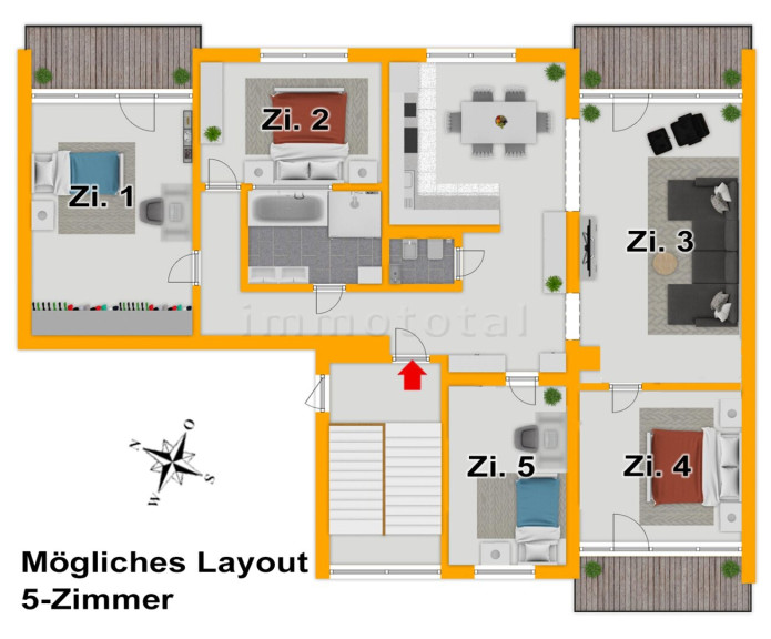Das aktuelle Raumkonzept umfasst ein großzügiges Wohnzimmer mit ca. 38 m² und zwei Balkonen, sowie zwei weitere Zimmer, sowie einer Ankleide. Mit nur geringem Aufwand kann die Wohnung jedoch zu einer 5-Zimmer-Einheit umgestaltet werden (siehe Grundrissbeispiel in der Fotogalerie) - ideal für größere Familien oder Personen mit Platzbedarf für Homeoffice, Gäste oder Hobbyräume. Die gut durchdachte Grundrissstruktur ermöglicht eine flexible und zukunftsorientierte Nutzung.