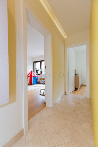 Die Wohnung liegt im ersten und zugleich obersten Stockwerk (kein Lift) eines Wohnhauses aus den 1960er-Jahren, das im Jahr 2010 umfassend saniert wurde (Fassaden- und Deckendämmung, neue Holz-Alu-Fenster, Sanierung der Balkone, etc.). Die rund 121 m² große Wohnfläche wird durch drei großzügige Balkone/Loggien mit je ca. 5 m² erweitert - zwei davon mit Morgensonne (Ostlage), einer mit Abendsonne (Westlage), ideal zur Entspannung mit Blick ins Grüne.