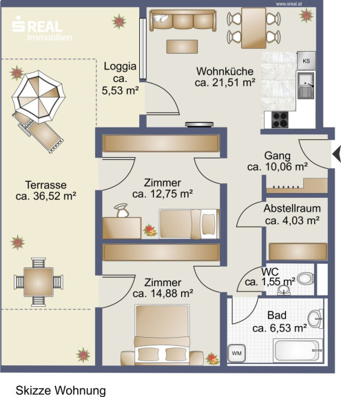 Terrasse: ca. 36,52 m²