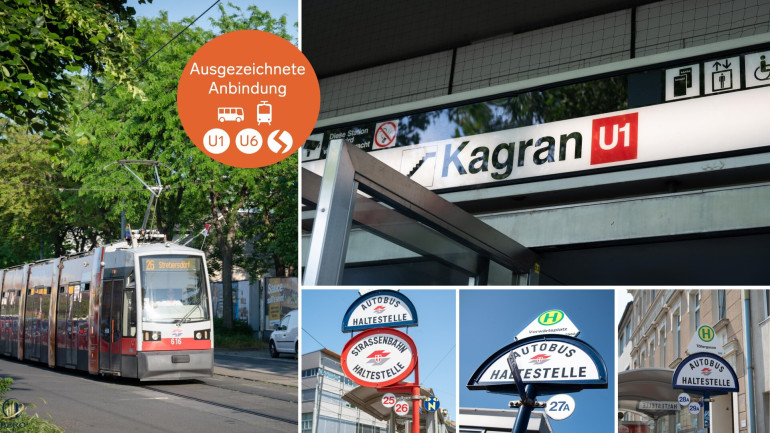 Dank der optimalen Anbindung sind Sie rasch in der City – mit dem Auto oder den Öffis in nur 30 Minuten am Stephansplatz. In direkter Umgebung verkehren mehrere Bus- und Straßenbahnlinien (29A, 28A, 27A sowie Tram 25 und 26), die eine schnelle Verbindung zu den U-Bahnstationen Kagran (U1) und Floridsdorf (U6, S-Bahn) bieten. Über die nahegelegene B3 gelangen Sie zügig zur Donauuferautobahn (A22) und zur Südosttangente (A23) – ideal für Pendler und Cityliebhaber gleichermaßen.