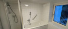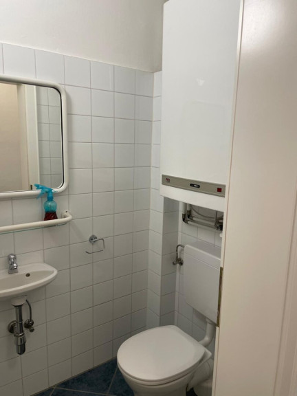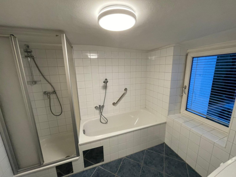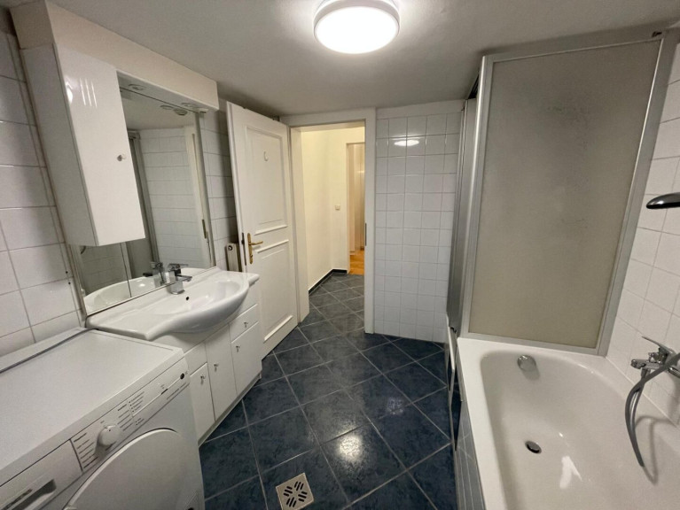 Bad und WC sind zwei getrennte Räume, wobei es im Badezimmer sowohl separate Duschkabine als auch Badewanne gibt. Zudem findet sich im Badezimmer eine Waschmaschine sowie ein Fenster (inkl. Jalousie) in den Innenhof und natürlich ein Badezimmerschrank/-verbau.
