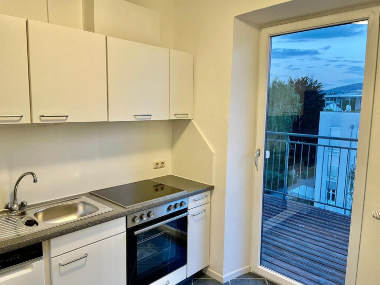 Dementsprechend findet sich eine vollausgestattete Küche mit neuen Elektrogeräten (Herd inkl. Backrohr, Kühlschrank, Geschirrspüler) darin. In der Küche ist Platz für einen kleinen Tisch für zwei Personen. Der große Balkon ist ebenfalls von der Küche aus begehbar und bietet dadurch unmittelbare Möglichkeit auch dort gemütlich zu essen und z.B. den Abend zu gemütlich ausklingen zu lassen.