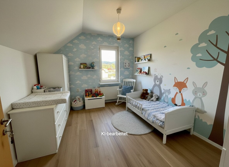 Das Schlafzimmer bietet ausreichend Platz für ein großes Bett und einen geräumigen Kleiderschrank. Hier können Sie sich zurückziehen und eine ruhige Nacht verbringen. Ein weiteres Zimmer kann als Kinderzimmer, Arbeitszimmer oder Gästezimmer genutzt werden - Ihren Ideen sind keine Grenzen gesetzt.