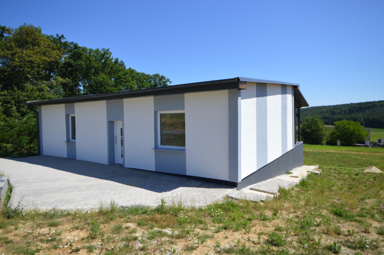 Die Fläche von ca. 90,73 m², die sich in zwei helle, einladende Zimmer, in einen offenen Wohn - Küchenbereich und Bad mit Toilette aufteilen, bieten genügend Platz für 2 Personen. Eine ca. 51m² große Terrasse wartet auf Ihre Gestaltung. Der Teilkeller bietet Platz für die Pelletsheizung und etwas Stauraum. Das 1153m² große Grundstück mit einer Süd - Ostausrichtung ist leicht abschüssig.