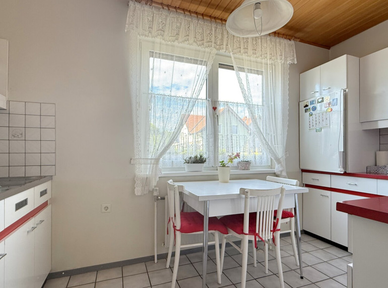 Ein Rundbogen öffnet den Raum zur einstigen Terrasse, heute fest verwoben mit dem Wohnzimmer, ist das Herzstück für alles, was man feiern, planen und genießen will. Ein großer Tisch steht hier wie ein stiller Gastgeber, der schon Geschichten von langen Spieleabenden, ausgedehnten Familienessen und spontanem Sonntagskaffee kennt. Hier wird nicht nur gegessen – hier wird gelebt, gelacht und manchmal sogar über den Sinn von Zeit diskutiert. Ob kreative Bastelstunden, ein ruhiger Moment mit einem Buch oder das laute Durcheinander einer Geburtstagsrunde – dieser Platz macht alles mit. Und zwischendrin fragt man sich manchmal, wie ein Raum so viel Gemütlichkeit auf einmal fassen kann.