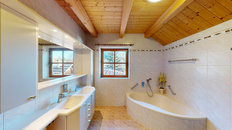 Fliesen, Öl, Einbauküche, Wohnküche / offene Küche, Ostbalkon, Westbalkon, Bad mit Fenster, Badewanne, Dusche, Kabel/Satelliten-TV, Parkplatz, Carport, Sauna, Wasch/Trockenraum