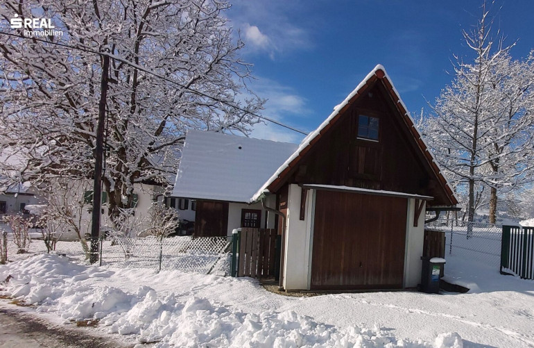 Im Nebengebäude befinden sich eine Garage, ein überdachter Abstellplatz und ein Dachraum – Stromanschluss vorhanden.