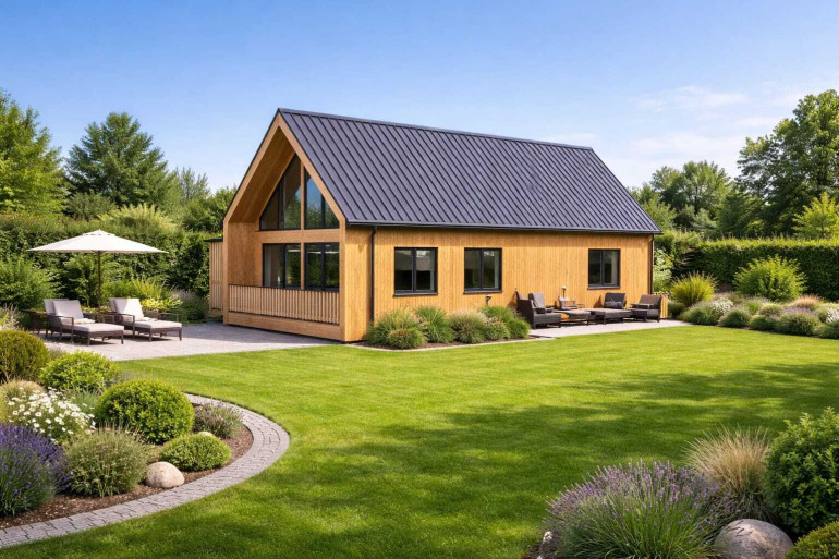 Auf einem modernen Schraubfundament errichtet, vereint es ökologische Bauweise mit modernem Wohnkomfort.